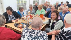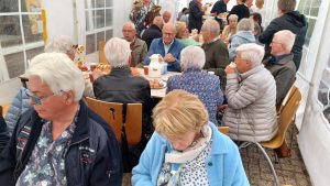 Na maanden plannen was het dan zover, de allereerste grote picknick georganiseerd op zaterdag 24 mei door Senioren Someren-Eind. Deze werd gehouden op schietterrein, De Kolenboer aan de Boerenkamplaan. Er hadden zich maar liefst 52 leden aangemeld voor deze middag, allemaal levensgenieters op leeftijd vol verhalen en goed gezelschap. Met dit aantal was het bestuur dik tevreden. Alles was goed geregeld, verse broodjes met beleg, fruit waaronder appels bananen en mandarijnen. Ook was er drinken in overvloed, zoals Thee, koffie en een lekkere sap. Wim Peeters had snoep tomaatjes, en Jan Thijs had de eitjes geschonken voor deze picknick, bedankt hiervoor. Tot zover geen vuiltje aan de lucht, maar juist deze dag begon het te regenen. Geen klein buitje, nee een plensbui alsof de wolken zelf ook zin hadden in een picknick. Toch raakte niemand in paniek. Het bestuur had vanwege het slechte weer een tent geplaatst die beschikbaar was gesteld door Gilde Sint Lambertus. Zodat de picknick gewoon door kon gaan. Nadat iedereen voldoende had gegeten konden wij gezellig gaan na borrelen in de kantine van gilde Sint Lambertus. Om half zes was het tijd en ging iedereen weer huiswaarts.