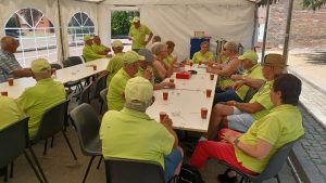 S’ morgensvroeg werd weer onze mooie tent door vele leden van onze club opgebouwd en ingericht met tafels en stoelen van de Einder. Ook voor het gebruik maken van de toiletten van de Einder onze hartelijke dank. Het weer met 27 graden was het goed toeven op onze banen, en zeker onder onze grote parasols. Iedereen die meespeelde werd om kwart voor een verwacht, er werd er een nieuwe groepsfoto gemaakt door fotograaf Nanny van Hoof. Hierna werd er een kort woord gedaan door Riny Vossen en een financieel verslag voorgelezen. Na dit alles werd er een kop koffie of thee gedronken met een heerlijk stuk cake gebakken door ons clublid Grada Bell. De wedstrijden konden van start gaan, en er hadden zich voor deze middag 28 leden aangemeld, Riny Vossen had hiervoor een mooi schema gemaakt. Er werden 3 rondes gespeeld, en na de eerste ronde werd er een pauze ingelast vanwege het warme weer. Maar ondanks de warmte bleven de spelers scherp en werd er menig spannende partij gespeeld. Riny Vossen Heette Jan en Soos Peeters van harte welkom zij waren op deze avond speciaal uitgenodigd, voor het werk wat de firma Peeters voor onze club had gedaan. Hierna werd er genoten van een gezellige barbecue, die geopend werd door Jan en Soos Peeters, waarbij de sfeer net zo warm bleef als het weer. Iedereen zat in spanning wie zich als eerste clubkampioen mocht noemen van Jeu de Boules club D’End 2025. Riny Vossen maakte de uitslag bekend en Grada Bell was onze eerste, geheel verdiende kampioen, gevolgd door Riny Vossen en als derde eindigde Wim van Veggel. Riny reikte aan Grada een mooi beeldje uit, en Grada was zeer trots en werd door vele gefeliciteerd. Tenslotte werd er nog voor iedereen ijs geserveerd. Om 23.00 uur gingen de laatste huiswaarts, de organisatie kan terugzien op een zeer geslaagd clubkampioenschap en zal voortaan ieder jaar met de kermis gehouden worden. Wij willen dan ook iedereen bedanken die op wat voor manier zijn steentje hieraan bijgedragen heeft.