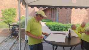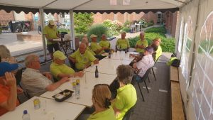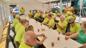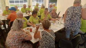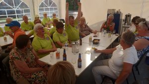 S’ morgensvroeg werd weer onze mooie tent door vele leden van onze club opgebouwd en ingericht met tafels en stoelen van de Einder. Ook voor het gebruik maken van de toiletten van de Einder onze hartelijke dank. Het weer met 27 graden was het goed toeven op onze banen, en zeker onder onze grote parasols. Iedereen die meespeelde werd om kwart voor een verwacht, er werd er een nieuwe groepsfoto gemaakt door fotograaf Nanny van Hoof. Hierna werd er een kort woord gedaan door Riny Vossen en een financieel verslag voorgelezen. Na dit alles werd er een kop koffie of thee gedronken met een heerlijk stuk cake gebakken door ons clublid Grada Bell. De wedstrijden konden van start gaan, en er hadden zich voor deze middag 28 leden aangemeld, Riny Vossen had hiervoor een mooi schema gemaakt. Er werden 3 rondes gespeeld, en na de eerste ronde werd er een pauze ingelast vanwege het warme weer. Maar ondanks de warmte bleven de spelers scherp en werd er menig spannende partij gespeeld. Riny Vossen Heette Jan en Soos Peeters van harte welkom zij waren op deze avond speciaal uitgenodigd, voor het werk wat de firma Peeters voor onze club had gedaan. Hierna werd er genoten van een gezellige barbecue, die geopend werd door Jan en Soos Peeters, waarbij de sfeer net zo warm bleef als het weer. Iedereen zat in spanning wie zich als eerste clubkampioen mocht noemen van Jeu de Boules club D’End 2025. Riny Vossen maakte de uitslag bekend en Grada Bell was onze eerste, geheel verdiende kampioen, gevolgd door Riny Vossen en als derde eindigde Wim van Veggel. Riny reikte aan Grada een mooi beeldje uit, en Grada was zeer trots en werd door vele gefeliciteerd. Tenslotte werd er nog voor iedereen ijs geserveerd. Om 23.00 uur gingen de laatste huiswaarts, de organisatie kan terugzien op een zeer geslaagd clubkampioenschap en zal voortaan ieder jaar met de kermis gehouden worden. Wij willen dan ook iedereen bedanken die op wat voor manier zijn steentje hieraan bijgedragen heeft.