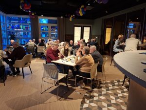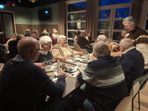 Op vrijdagavond 30 januari hadden we onze snertmiddag-avond in de Einder. Deze begon om 17.00 uur en om 16.30 uur begonnen er al wat mensen binnen te komen. Manus, Rinie en Andrea waren al druk bezig om de snert warm te maken terwijl Trudi ook al druk bezig was met het roggebrood met zult, Ann en Hennie waren in de foyer tafels en stoelen klaar aan het zetten zodat iedereen ook ergens kon zitten. Om 17.00 uur was dan ook bijna iedereen aanwezig die zich op had gegeven. Een enkeling had zich nog afgemeld door ziekte of een andere geldige reden. Al met al waren we toch met een kleine 50 personen. We begonnen met koffie of thee voor iedereen, en rond 17.45 uur had iedereen de eerste kop snert voor zich staan. Er was voldoende gemaakt dus er kon nog een tweede kop snert genomen worden als men wilde. Nadien is er nog gezellig na gekletst met lekkere drankjes naar keuze die men wel zelf moest afrekenen. Het was een gezellige middag/avond geweest. Iedereen ging tevreden naar huis.